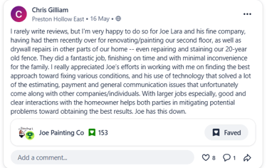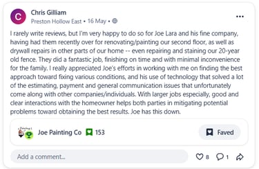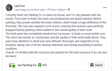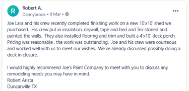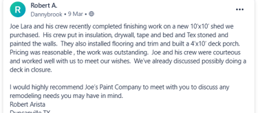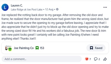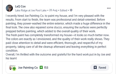 We take pride in every project, and nothing means more than the kind words from those we’ve worked with. See what our clients have to say about their experience with Joe Painting Co.